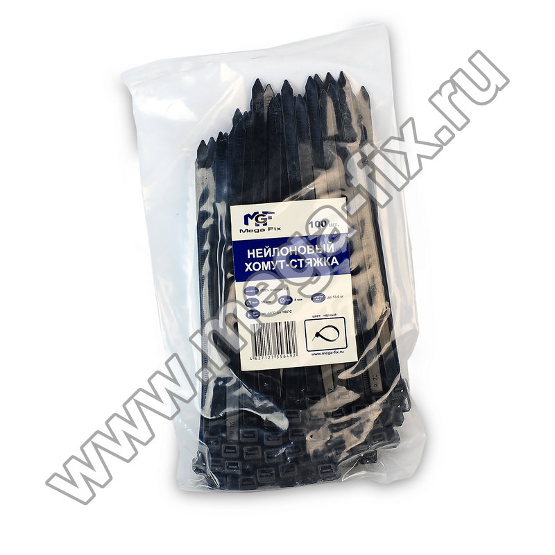 Хомут нейлоновый MGF 4,6х300 мм черного цвета (100 шт./ уп.)